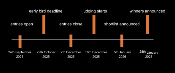 All entries cost £350 GBP and the final submission deadline is Sunday 7th December There is still time to enter, but you must act fast.